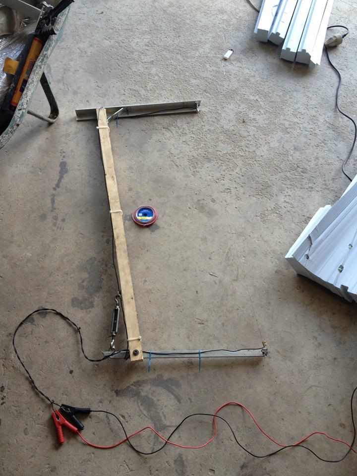 Lorsque les 2 gabarits sont fixés, c'est le moment de découper à l'aide du fil chaud (photo du milieu). Le moment tant attendu !